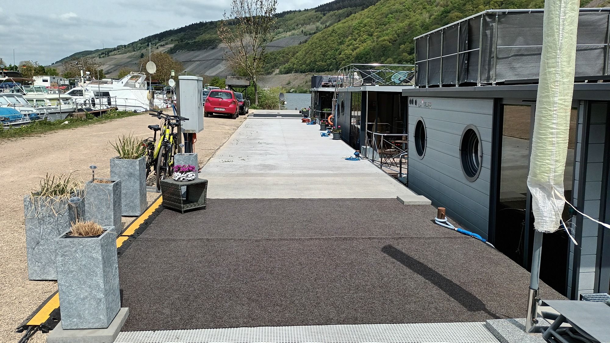 Unsere Moselrose liegt direkt auf der Mosel und ist eingebettet in die Weinberge. Sie erleben das besondere Feeling direkt auf der Mosel zu leben und zu schlafen, während andere Boote an ihnen vorbei schippern. Große Fensterfronten oder die Sonnenterrasse auf dem Oberdeck bieten eine tolle Aussicht und laden zum gemütlichen verweilen ein. Vom Hausboot ausgehend bieten sich auch viele Ausflugsmöglichkeiten, zu Fuß oder mit dem Fahrrad an.